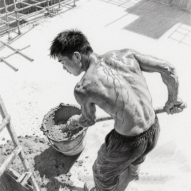 他正艰难挪动脚步,肩扛沉重的钢筋,忽然背后传来粗鲁的呵斥:“小崽子,磨蹭什么呢?没长眼的东西!”工头叼着烟,不耐烦地推搡了他一把。